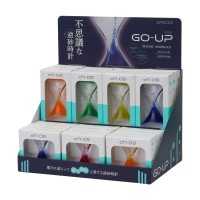 ゴーアップは、重力に逆らってカラービーズがゆらゆら揺れながら昇っていく観賞用液体砂時計です。その様子はまるで時間が戻っていくかのように!?